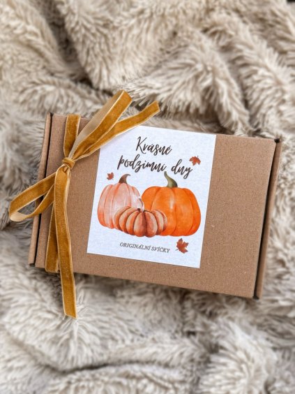Dárkový set 3 ks sójových svíček ve tvaru dýní. Ručně vyráběné, přírodní vosk, krabička se stuhou. Ideální podzimní dekorace nebo originální dárek.