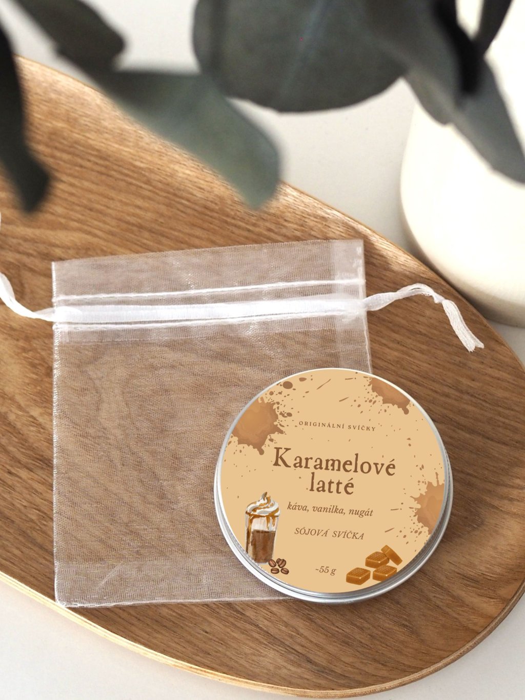 Roztomilá malá svíčka v plechovce Karamelové latté. Sladší krémová vůně kávy, vanilky a nugátu. Ideální jako dárek, cestovní balení i zkušební svíčka.