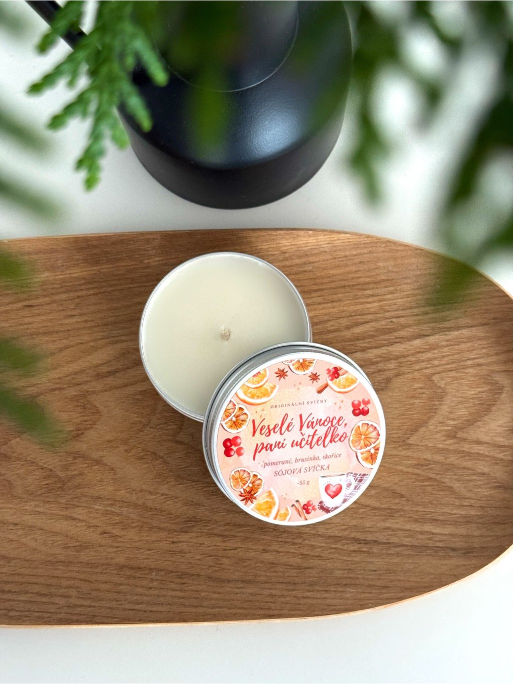 Dárek, který zahřeje u srdce. Malá sójová svíčka v plechovce (55 g) s vůní Zachumlej se kombinuje pomeranč, brusinku a skořici – ovocná, lehce kořeněná vůně ideální pro chladné dny.